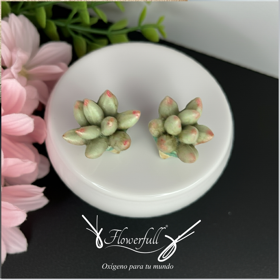 Aretes tipo pin y dije con diseño floral en 3D de Flowerfull clay,
