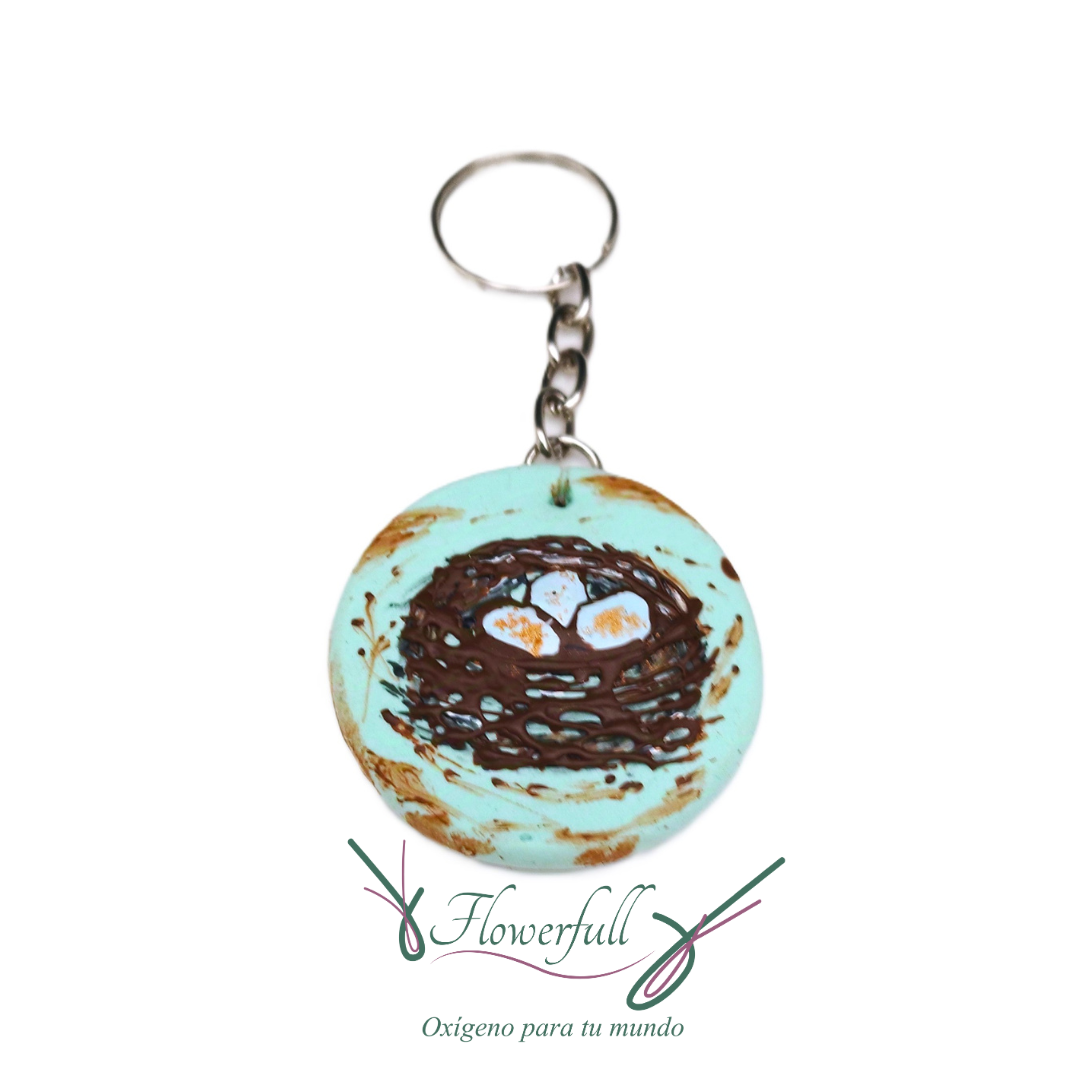 Llavero diseño nido, elaborado a mano con Flowerfullclay para un regalo de recuerdo de tu evento baby shower.